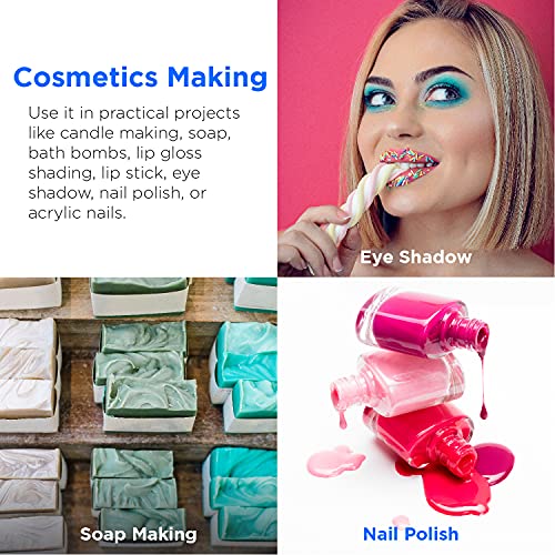 - CRAFTING CREATIVELY - Make your next DIY project pop! Use safe, cosmetic-grade pigments for your art project or scrapbooking. Perfect for epoxy resin, car freshies, hand soaps, candles, acrylic and fiberglass nails, slime, nail polish and even makeup!